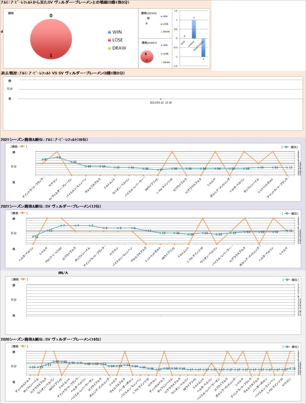 アルミニア・ビーレフェルト | VS | SV ヴェルダー・ブレーメン | 2 |