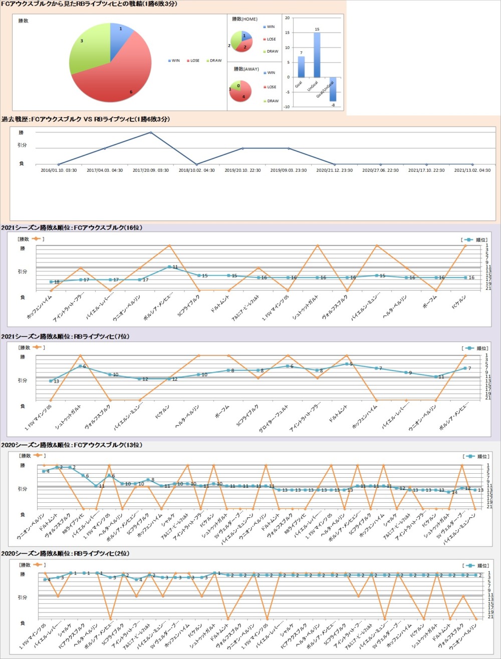 | FCアウクスブルク | VS | RBライプツィヒ | 2 | ||